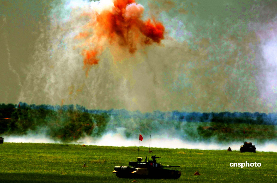 中國、俄羅斯兩軍總參謀長,7月23日上午到沈陽軍區洮南合同戰術訓練基地,觀看“和平使命2009”聯合反恐軍事演習。雙方以陸軍和空軍為主,中方參演部隊包括1個陸軍戰斗群和1個空軍戰斗群。俄方參演兵力包括1個陸軍加強摩步營、1個空降突擊連和部分空軍兵力,雙方投入兵力兩千多人。中新社發 宋吉河 攝