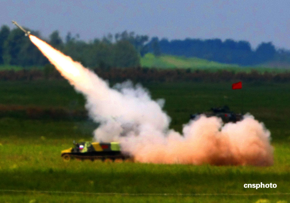 中國(guó)、俄羅斯兩軍總參謀長(zhǎng),7月23日上午到沈陽(yáng)軍區(qū)洮南合同戰(zhàn)術(shù)訓(xùn)練基地,觀看“和平使命2009”聯(lián)合反恐軍事演習(xí)。雙方以陸軍和空軍為主,中方參演部隊(duì)包括1個(gè)陸軍戰(zhàn)斗群和1個(gè)空軍戰(zhàn)斗群。俄方參演兵力包括1個(gè)陸軍加強(qiáng)摩步營(yíng)、1個(gè)空降突擊連和部分空軍兵力,雙方投入兵力兩千多人。中新社發(fā) 宋吉河 攝