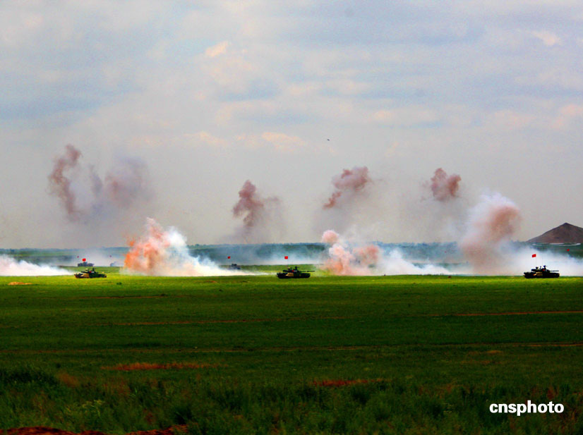 中國、俄羅斯兩軍總參謀長,7月23日上午到沈陽軍區(qū)洮南合同戰(zhàn)術(shù)訓(xùn)練基地,觀看“和平使命2009”聯(lián)合反恐軍事演習(xí)。雙方以陸軍和空軍為主,中方參演部隊(duì)包括1個(gè)陸軍戰(zhàn)斗群和1個(gè)空軍戰(zhàn)斗群。俄方參演兵力包括1個(gè)陸軍加強(qiáng)摩步營、1個(gè)空降突擊連和部分空軍兵力,雙方投入兵力兩千多人。中新社發(fā) 宋吉河 攝