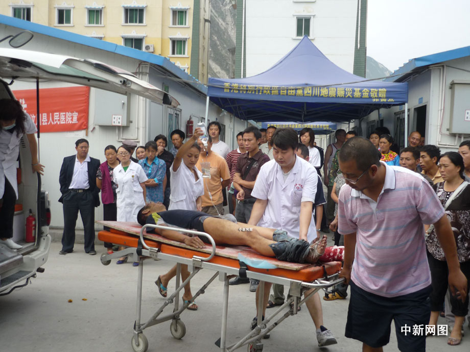 25日凌晨四點鐘左右,汶川縣境內國道二一三線徹底關大橋被山上飛下來的巨石砸斷,已造成100米的橋面坍塌,7輛汽車受損,12人不同程度受傷,3人死亡,都汶路通行中斷。圖為汶川縣人民醫院正在積極搶救傷員。 汶新 攝