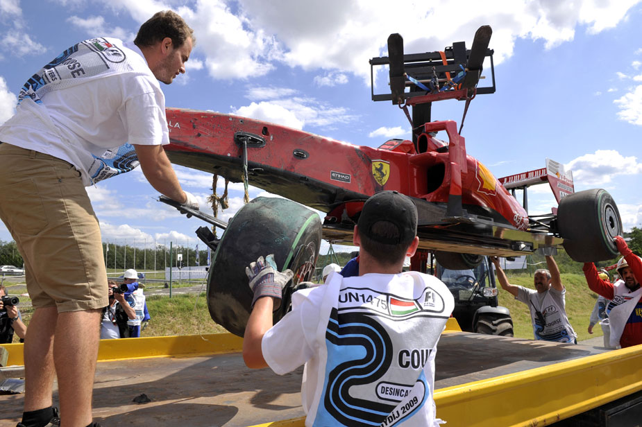 當地時間25日,F1大獎賽匈牙利站的排位賽在亨格羅林賽道舉行。法拉利車隊的巴西車手馬薩的賽車在第二節沖出賽道并撞上輪胎墻,馬薩受傷后被直升機送往布達佩斯的國防醫院接受治療。據報道稱,雖然他的傷勢嚴重,但并無生命危險。