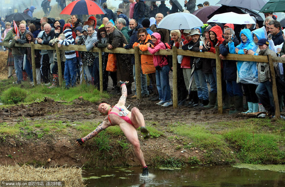 7月26日,硬漢挑戰(zhàn)賽在英國的伍爾弗漢普頓市舉行。這種以恐怖障礙著稱的比賽規(guī)則很簡單,勇士們通過規(guī)定的路程,誰先到達終點就是冠軍!參賽者需要在火焰中奔跑,穿越齊腰深的沼澤地,在帶刀片的鐵絲網(wǎng)下爬行,躍湖中,屏住呼吸穿越水下泥潭……