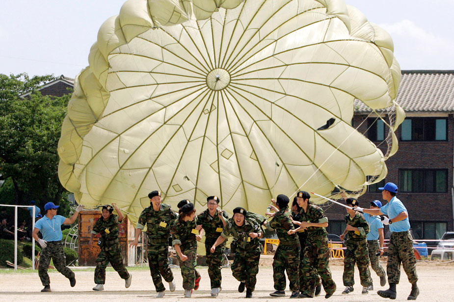 7月29日,韓國數百名學生和市民在位于首爾的美軍基地參加軍訓夏令營,此次軍訓夏令營共為期四天。