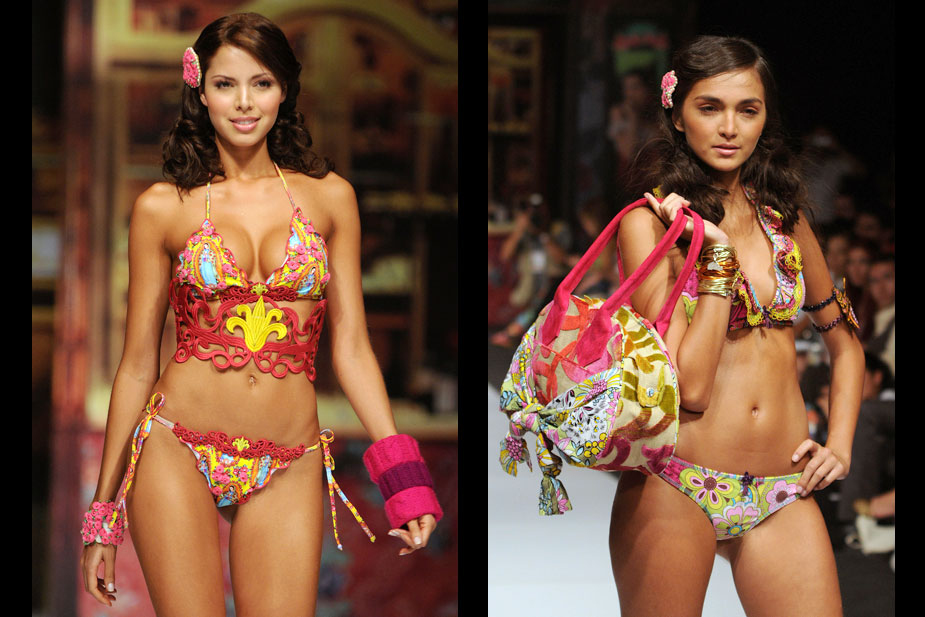 7月29日,哥倫比亞麥德林舉辦流行時裝周,時裝周上亮麗的模特們展示了哥倫比亞設計師設計的充滿南美風情的服裝服飾。