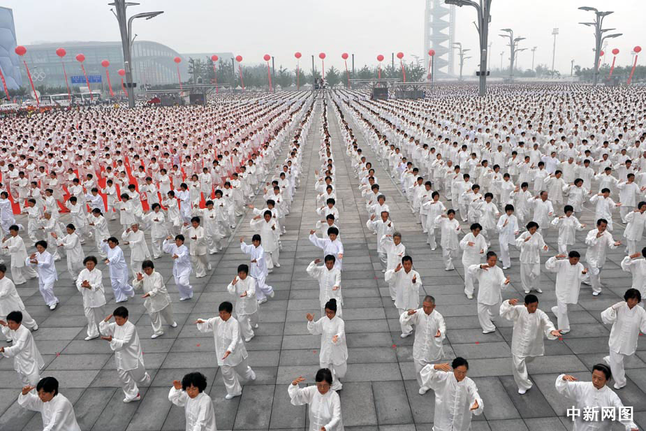 8月8日,全國首個“全民健身日”北京主會場啟動儀式上,三萬多群眾進行太極拳展示活動,在世界吉尼斯總部認證官員的見證下成功打破世界紀錄。中新網記者 金碩 攝