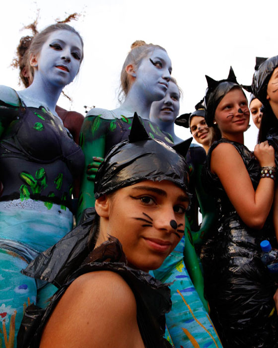 圖為參加狂歡節的人們在臉上進行“涂鴉”。
