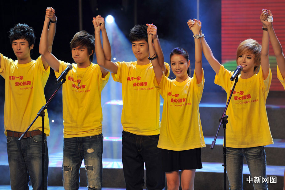 8月22日晚,北京舉行“兩岸一家 愛心無限”為臺灣同胞賑災(zāi)義演晚會,大陸和臺灣演藝界明星登臺為臺灣災(zāi)區(qū)同胞共獻(xiàn)愛心,晚會臨近結(jié)束時共收到各界捐款3000多萬元。中新網(wǎng)記者 金碩 攝
