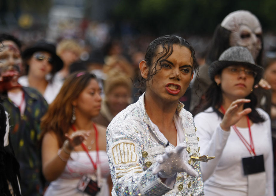8月29日,逾萬名墨西哥人在墨西哥城廣場同時跳舞,用以紀(jì)念邁克爾·杰克遜第51個“生日”,同時也試圖打破同時跳舞人數(shù)最的吉尼斯世界紀(jì)錄。圖片來源:中國新聞網(wǎng)