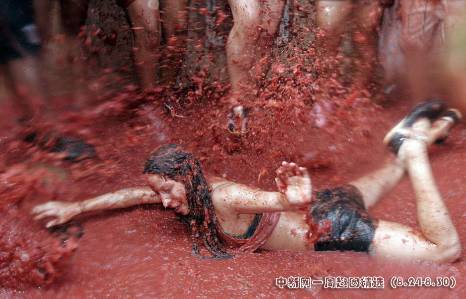 8月26日,西班牙東南部小鎮(zhèn)Bunol當日迎來傳統(tǒng)的西紅柿節(jié)。大約4萬名狂歡者在1小時內(nèi)扔掉了11萬公斤西紅柿。圖片來源:中國新聞網(wǎng)