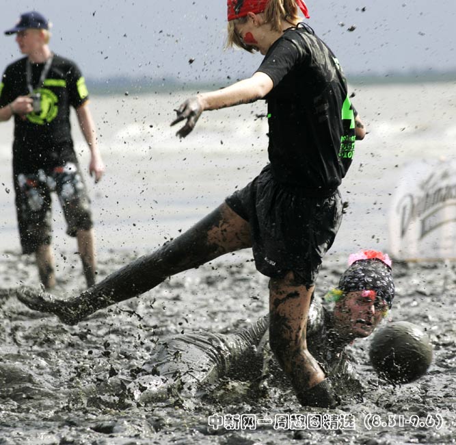 德國北部海邊小鎮(zhèn)Brunsbuettel的泥灘上進行一場別開生面的泥地足球賽。圖片來源:中國新聞網(wǎng)