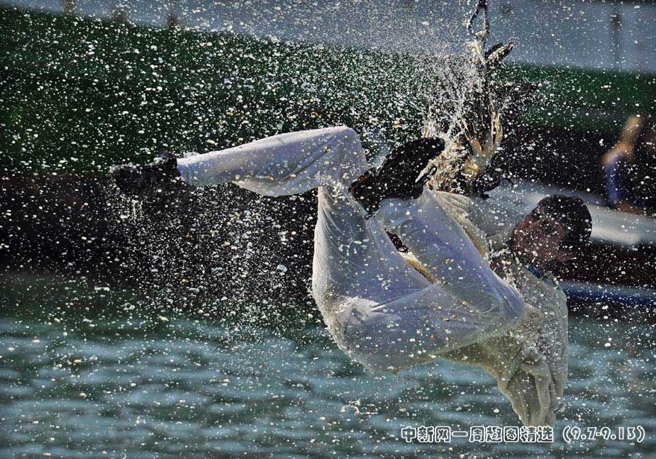 9月6日,西班牙巴斯克地區舉行傳統“鵝日”活動。人們用繩子將一些死鵝吊在空中,狂歡者跳起猛扯鵝頭,看誰能取下。圖片來源:中國新聞網