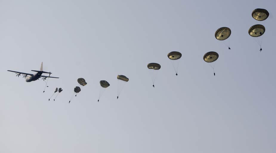 9月19日,英國空降兵在荷蘭埃德附近進行傘降表演,紀念二戰期間盟軍最大規模的空降作戰——“市場花園”行動65周年。圖片來源:中國新聞網