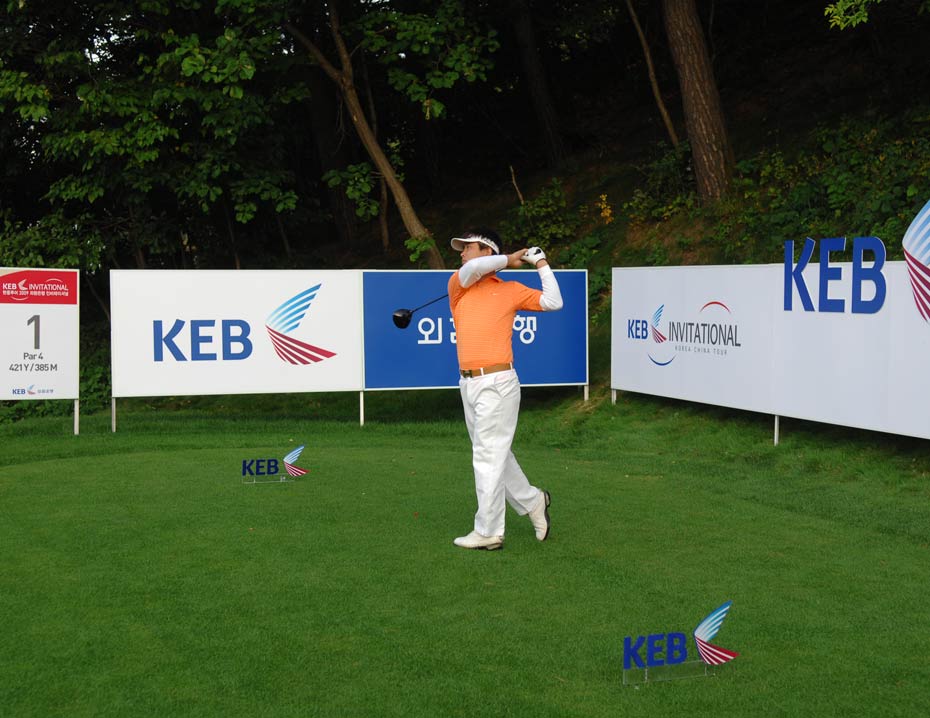2009“韓國KEB銀行”中韓職業高爾夫球巡回賽韓國站于今天在韓國OSTAR高爾夫球俱樂部正式開桿,有47名球員代表中國參賽。圖為選手們上場第一天,揮桿開打的場面。