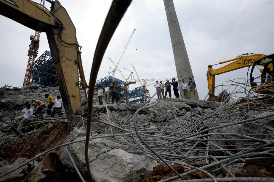 印度中部一座在建電廠的巨型煙囪23日下午發(fā)生倒塌,目前估計已有至少100人罹難。圖片來源:中國新聞網(wǎng)