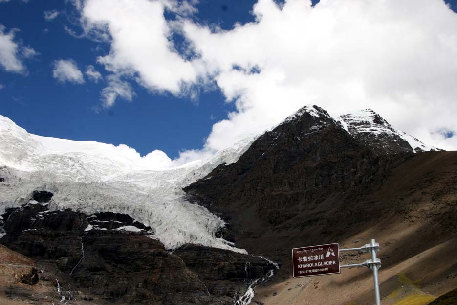 由于長年受公路上的車塵的覆蓋,此冰川整體呈白分層形。山口南面6647米的卡魯峰是年楚河和羊卓雍錯兩大水系的分水嶺,此處雪山高聳,周圍冰川地貌突出,巨大的冰川從山頂一直伸展到離公路只有幾百米的路邊,晶瑩幽藍的冰川寒氣迫人,加上山峰云霧飄緲,仿佛來到了生命絕跡的天界盡頭。