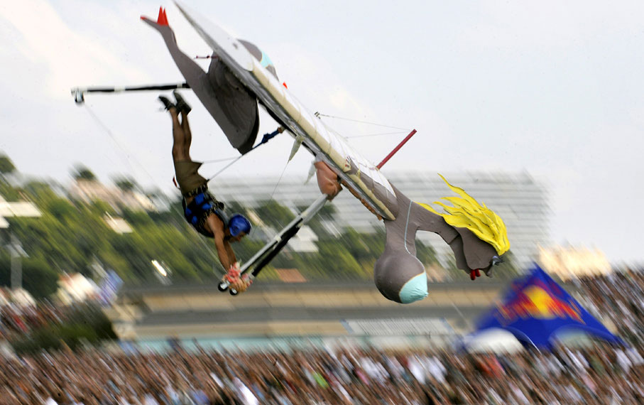 9月27日,法國(guó)馬賽趣味飛行器大賽舉行。比賽規(guī)則簡(jiǎn)單,誰能在落水之前飛得更遠(yuǎn)誰就是冠軍,但參賽選手絞盡腦汁,把自己的飛行器扮成各種古怪摸樣。圖片來源:中國(guó)新聞網(wǎng)