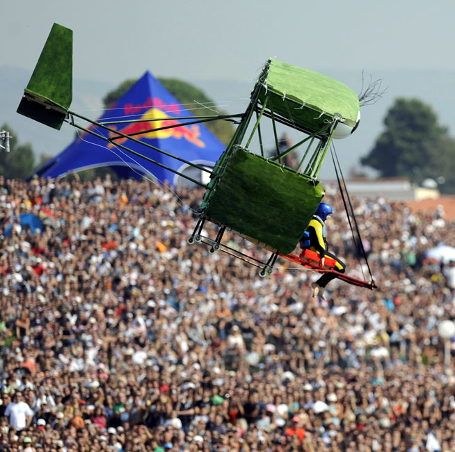 9月27日,法國馬賽趣味飛行器大賽舉行。比賽規則簡單,誰能在落水之前飛得更遠誰就是冠軍,但參賽選手絞盡腦汁,把自己的飛行器扮成各種古怪摸樣。圖片來源:中國新聞網