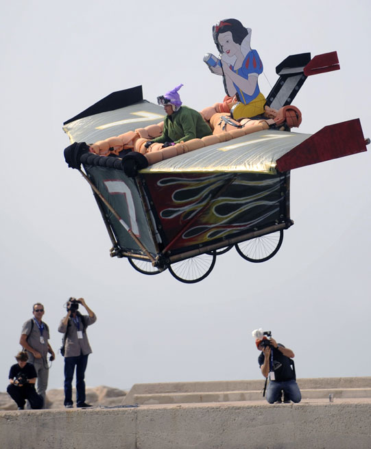 9月27日,法國馬賽趣味飛行器大賽舉行。比賽規(guī)則簡單,誰能在落水之前飛得更遠誰就是冠軍,但參賽選手絞盡腦汁,把自己的飛行器扮成各種古怪摸樣。圖片來源:中國新聞網(wǎng)
