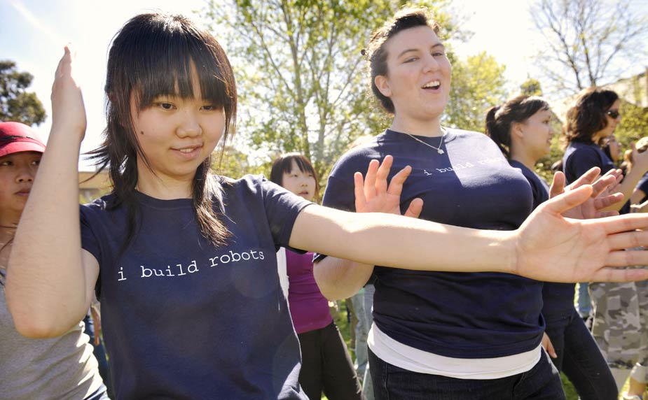9月29日,379名澳大利亞學生在草坪上齊刷刷地跳起了“機器人舞”,打破了集體跳“機器人舞”的世界紀錄。其中還有一些學生從頭到腳裹上了金屬箔紙,還有一些身穿海盜服裝。此前集體跳“機器人舞”的紀錄保持者是276名來自英國肯特大學的學生。