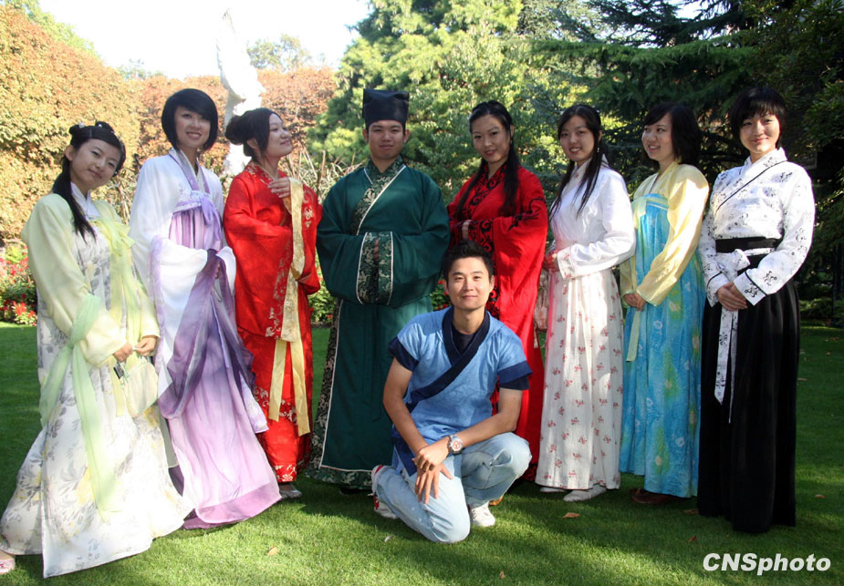 當(dāng)?shù)貢r(shí)間9月27日,來(lái)自法國(guó)、英國(guó)、德國(guó)和荷蘭的20多名中國(guó)留學(xué)生會(huì)聚巴黎盧森堡公園,換上嶄新的漢服,然后列隊(duì)向巴黎圣母院、埃菲爾鐵塔、盧浮宮和香榭麗舍大道等法國(guó)著名景點(diǎn)出發(fā)。他們以漢服巡游這種特殊方式宣傳中國(guó)文化,迎接新中國(guó)六十華誕的到來(lái)。 中新社發(fā) 吳衛(wèi)中 攝