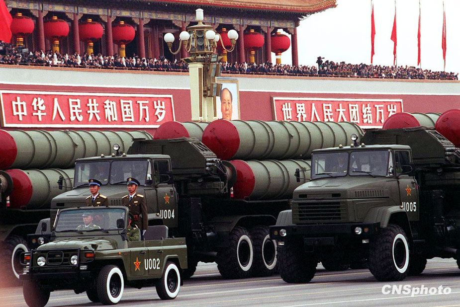 圖為空軍的中遠程地對空導彈出現在1999年國慶閱兵行列中。中新社發 滿會喬 攝