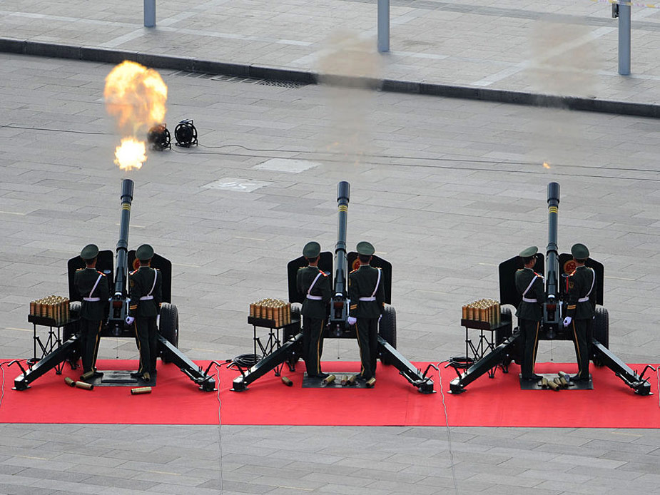 2009年10月1日,中華人民共和國成立60周年慶祝大會在北京天安門廣場舉行。圖為國慶慶典禮炮在天安門廣場鳴響。圖片來源:新華網 任勇 攝