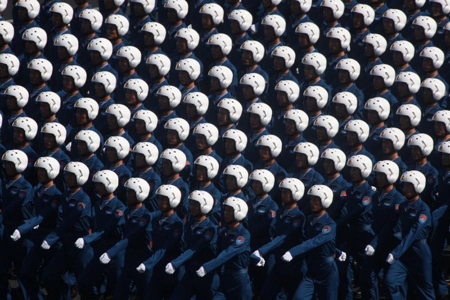 2009年10月1日,北京,首都各界慶祝中華人民共和國成立60周年大會(huì)在北京舉行。大會(huì)結(jié)束后舉行了盛大的閱兵式。圖為接受檢閱的徒步方隊(duì)。 史家民/CFP