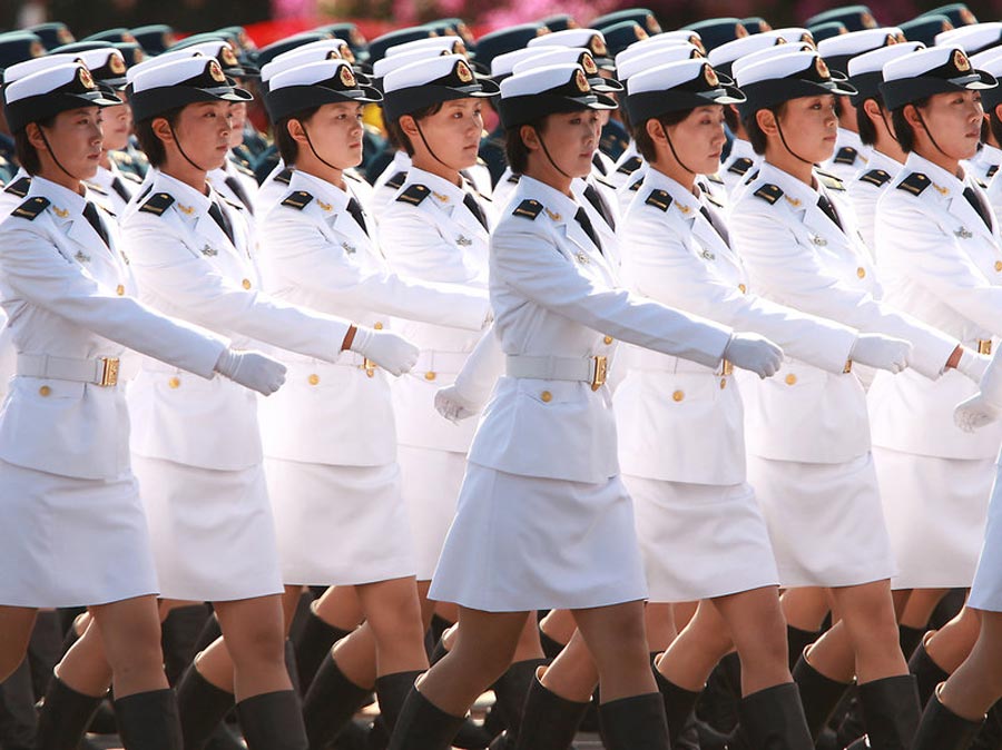 2009年10月1日,北京,首都各界慶祝中華人民共和國成立60周年大會在北京舉行。閱兵式上女兵方陣成為一道靚麗風景。