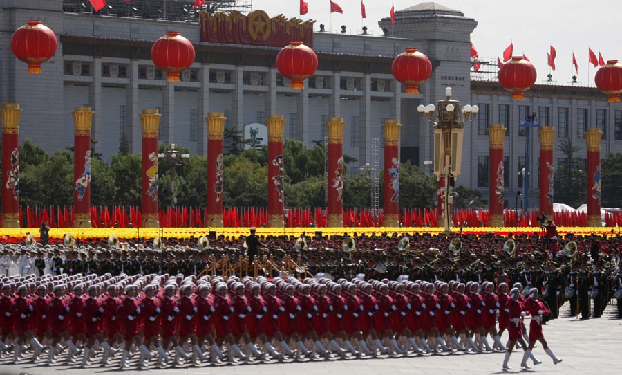 2009年10月1日,北京,首都各界慶祝中華人民共和國成立60周年大會在北京舉行。圖為閱兵式上英姿颯爽的女民兵。