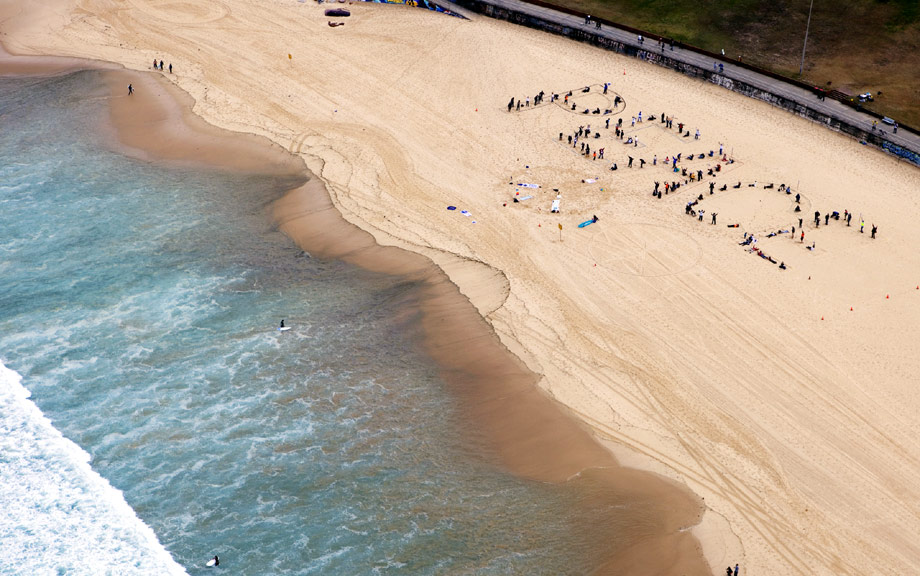 10月4日,一個在全球范圍內祈求和平的活動在多個國家展開,呼吁結束戰爭、消除核武器和結束各種暴力行為。在澳大利亞悉尼附近的海灘上,參加和平游行的人組成和平圖案。來源:中國新聞網