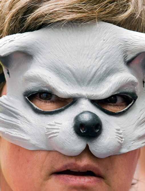 10月4日,在墨西哥首都墨西哥城,參加世界動物日活動的人們頭帶面具,手舉圖片,呼吁人們關(guān)注動物權(quán)益。來源:中國新聞網(wǎng)