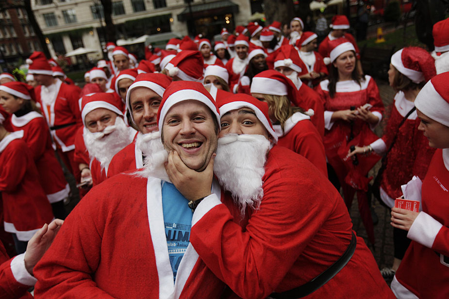 10月6日,英國倫敦市中心100多位圣誕老人為籌集乳腺癌護理善款而參加歡樂跑活動。圖片來源:中國新聞網