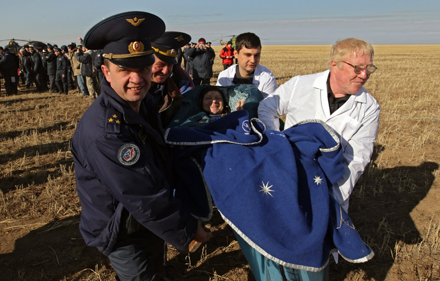 10月11日,俄羅斯“聯(lián)盟TMA-14”載人飛船攜加拿大太空游客蓋·拉利伯特及兩名宇航員一起返回地球,成功在哈薩克斯坦著陸。來(lái)源:中國(guó)新聞網(wǎng)