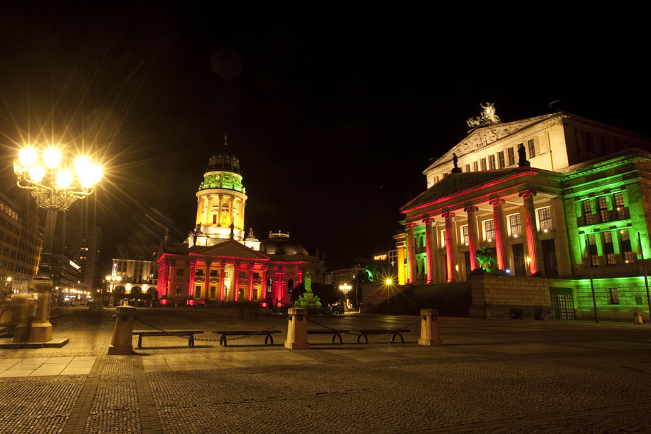 10月14日德國柏林將迎來一年一度的“燈節(jié)”。13日晚在德國首都柏林,柏林音樂廳在“燈節(jié)”預(yù)演中被五彩燈飾照亮。