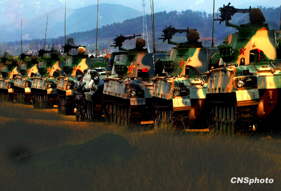 解放軍濟(jì)南軍區(qū)“前鋒-2009A”軍事演習(xí),將于10月21日在某合同戰(zhàn)術(shù)訓(xùn)練基地舉行,參加演習(xí)部隊(duì)10月20日組織戰(zhàn)前動(dòng)員。這次演習(xí)主要是由兵力兵器數(shù)量規(guī)模向信息火力效能聚優(yōu)轉(zhuǎn)變、指揮的重心由主攻方向上的重點(diǎn)突破向作戰(zhàn)關(guān)節(jié)要害的體系毀癱轉(zhuǎn)變、火力的運(yùn)用由概略粗放決策向科學(xué)精細(xì)籌劃轉(zhuǎn)變、協(xié)同的重點(diǎn)由地面步坦行動(dòng)向陸空火力協(xié)調(diào)轉(zhuǎn)變、行動(dòng)的控制由時(shí)間位置推進(jìn)量向效果態(tài)勢(shì)達(dá)成度轉(zhuǎn)變、作戰(zhàn)的目的由殲敵奪地向控要制權(quán)轉(zhuǎn)變。 中新社發(fā) 宋吉河 攝