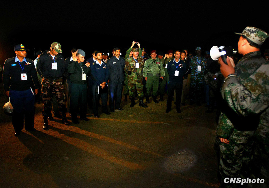 當晚國防大學防務學院、空軍指揮學院的外軍學員,以及英國、以色列、土耳其、巴基斯坦等國軍事觀察員親臨現場觀摩了后勤保障戰斗準備、自行榴彈炮占領陣地、裝甲車輛“摸黑”開進等戰斗要素。圖為參觀后勤保障基地。中新社發 宋吉河 攝