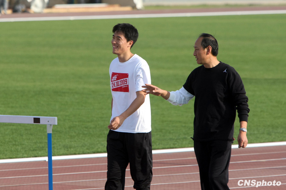 10月22日下午,“飛人”劉翔亮相濟(jì)南奧體中心田徑訓(xùn)練場(chǎng),在教練孫海平的帶領(lǐng)下,輕松備戰(zhàn)全運(yùn)會(huì)。來(lái)源:中國(guó)新聞網(wǎng)