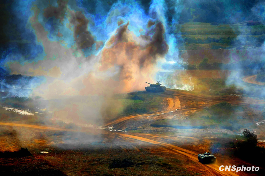 解放軍“前鋒-二00九A”演習,二十二日在濟南軍區某合同戰術訓練基地進行陸空聯合火力打擊實兵實彈演練。中新社發 宋吉河 攝