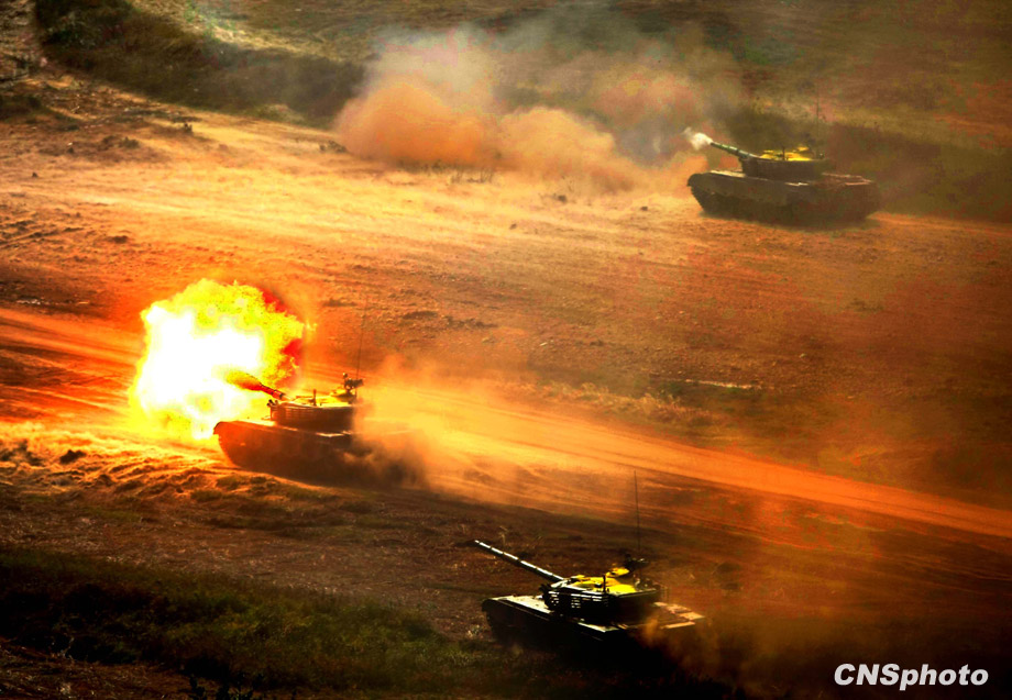 解放軍“前鋒-二00九A”演習,二十二日在濟南軍區某合同戰術訓練基地進行陸空聯合火力打擊實兵實彈演練。中新社發 宋吉河 攝