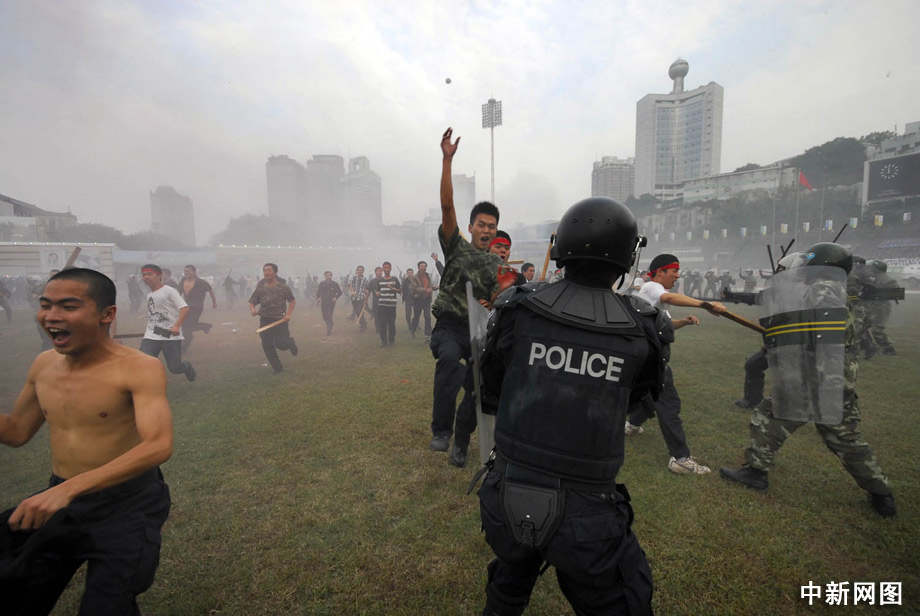 23日,推進(jìn)“平安重慶”建設(shè)突發(fā)事件應(yīng)急演練在該市渝中區(qū)大田灣體育場(chǎng)舉行,重慶各警種突精銳力量重裝登場(chǎng),將各類事件一一化解。