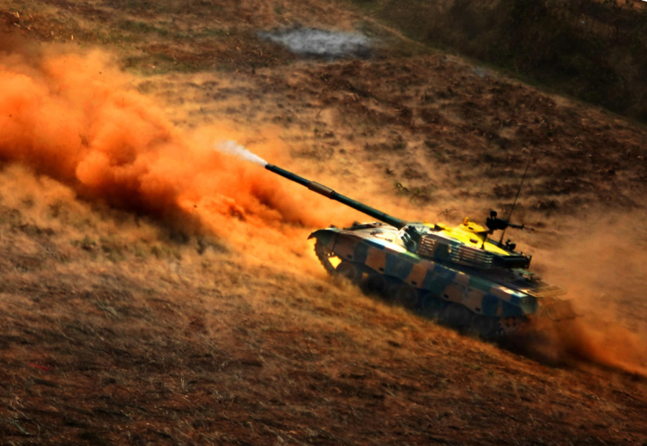 解放軍“前鋒-二00九A”演習,二十二日在濟南軍區某合同戰術訓練基地進行陸空聯合火力打擊實兵實彈演練。中新社發 宋吉河 攝