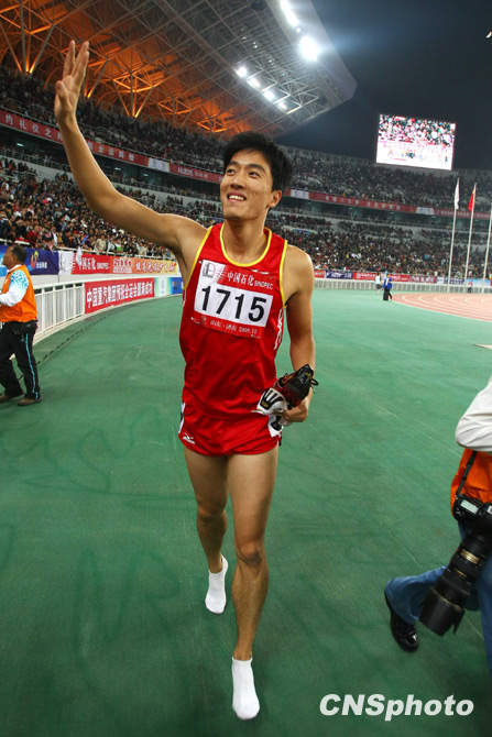 10月25日,在全運會田徑男子110米欄決賽中,上海代表團選手、“中國飛人”劉翔以13秒34的成績勇奪冠軍,同時也成就了其全運會該項目三連冠的偉業。
