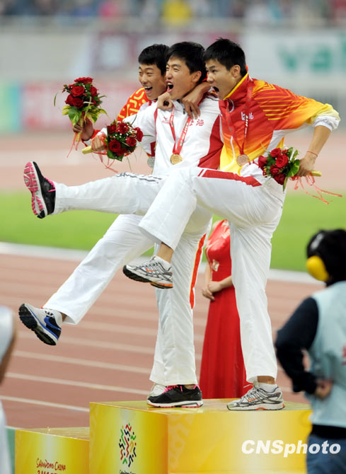 10月25日,在全運會田徑男子110米欄決賽中,上海代表團選手、“中國飛人”劉翔以13秒34的成績勇奪冠軍,同時也成就了其全運會該項目三連冠的偉業。