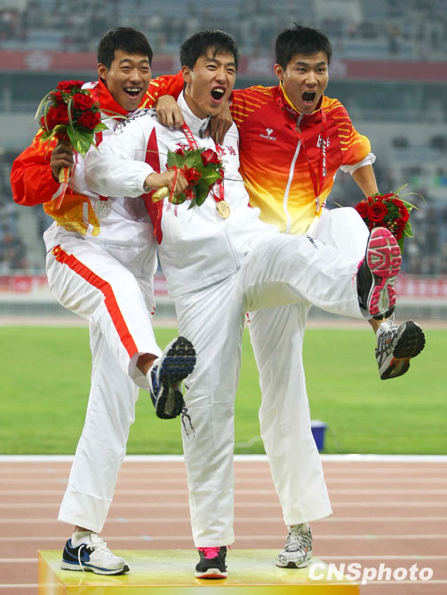 10月25日,在全運(yùn)會田徑男子110米欄決賽中,上海代表團(tuán)選手、“中國飛人”劉翔以13秒34的成績勇奪冠軍,同時也成就了其全運(yùn)會該項目三連冠的偉業(yè)。