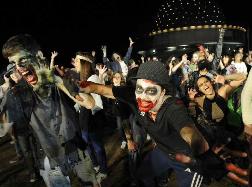 25日,“戰(zhàn)栗全世界”活動(dòng)在全球300多座城市同期舉行,全球一共有大約20000人同時(shí)跳起了邁克·杰克遜著名的戰(zhàn)栗舞。圖片來源:中國(guó)新聞網(wǎng)