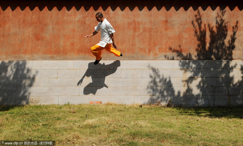 釋理亮平日時常練習飛檐走壁,他說這也是鍛煉腿部爆發力的一種方式。 林朝陽/CFP