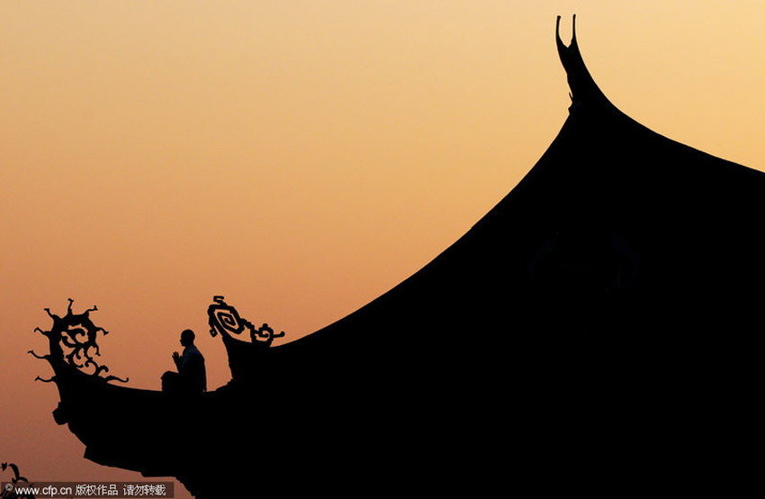 釋理亮也很注重內(nèi)家心法,每天都會按時爬到屋檐上獨自打坐調(diào)息。 林朝陽/CFP
