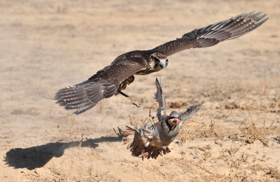 10月30日,在吉爾吉斯斯坦Bokonbayevo傳統的狩獵節上,一只捕獵鳥在追獵物。圖片來源:中國新聞網