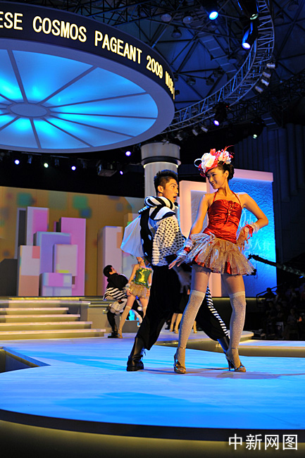 10月31日晚,“2009中華小姐環球大賽”總決賽上,12名入圍總決賽的佳麗身著迷你裙大秀性感爵士舞。中新網記者 金碩 攝