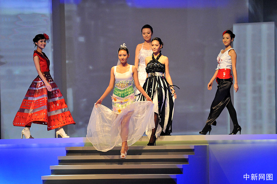 10月31日晚,“2009中華小姐環(huán)球大賽”總決賽上,12名入圍總決賽的佳麗身著各式服裝展現(xiàn)曼妙身姿,此外大賽還設(shè)計了一套“廢品服裝”呼吁環(huán)境保護(hù)。中新網(wǎng)記者 金碩 攝